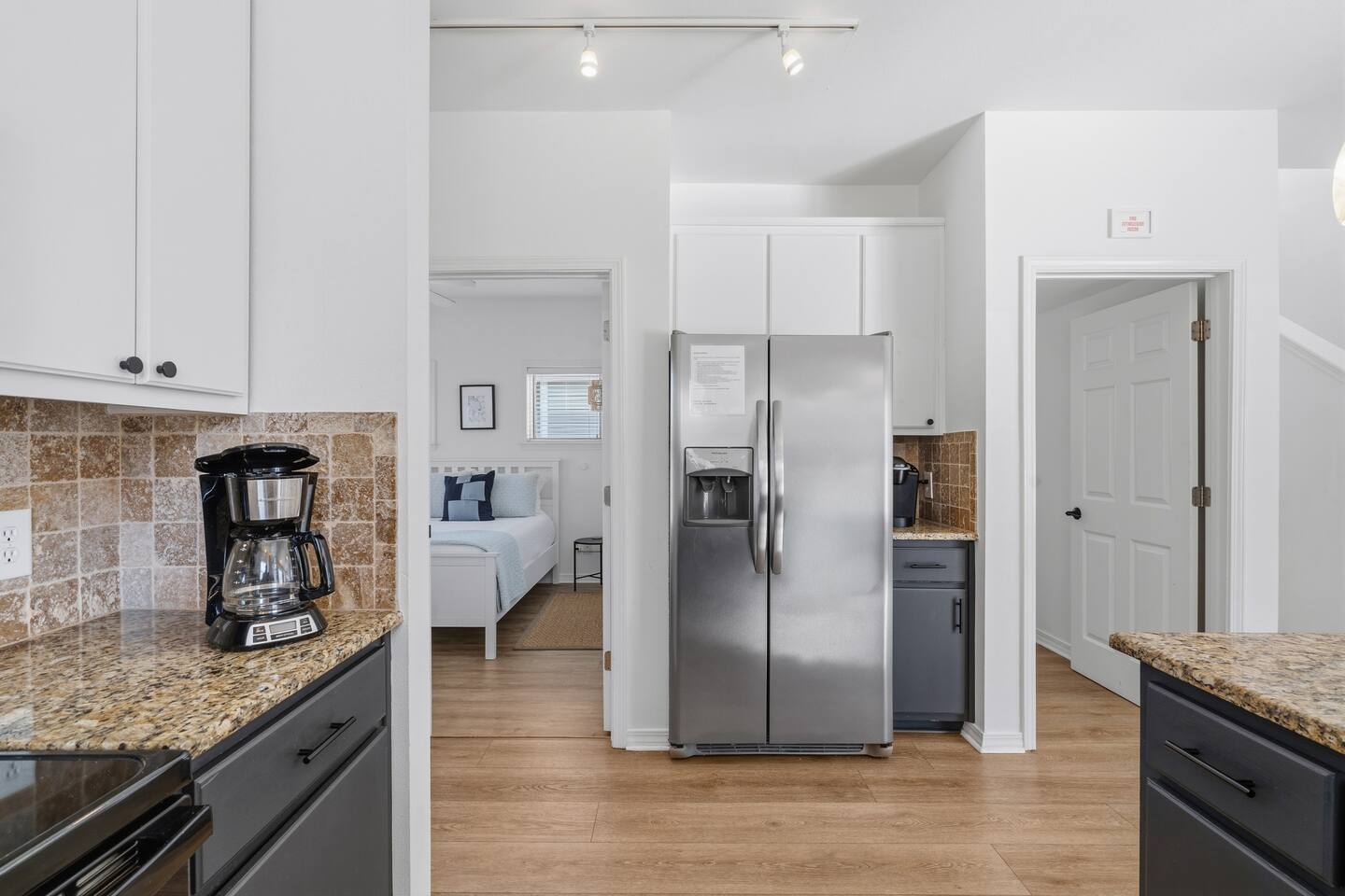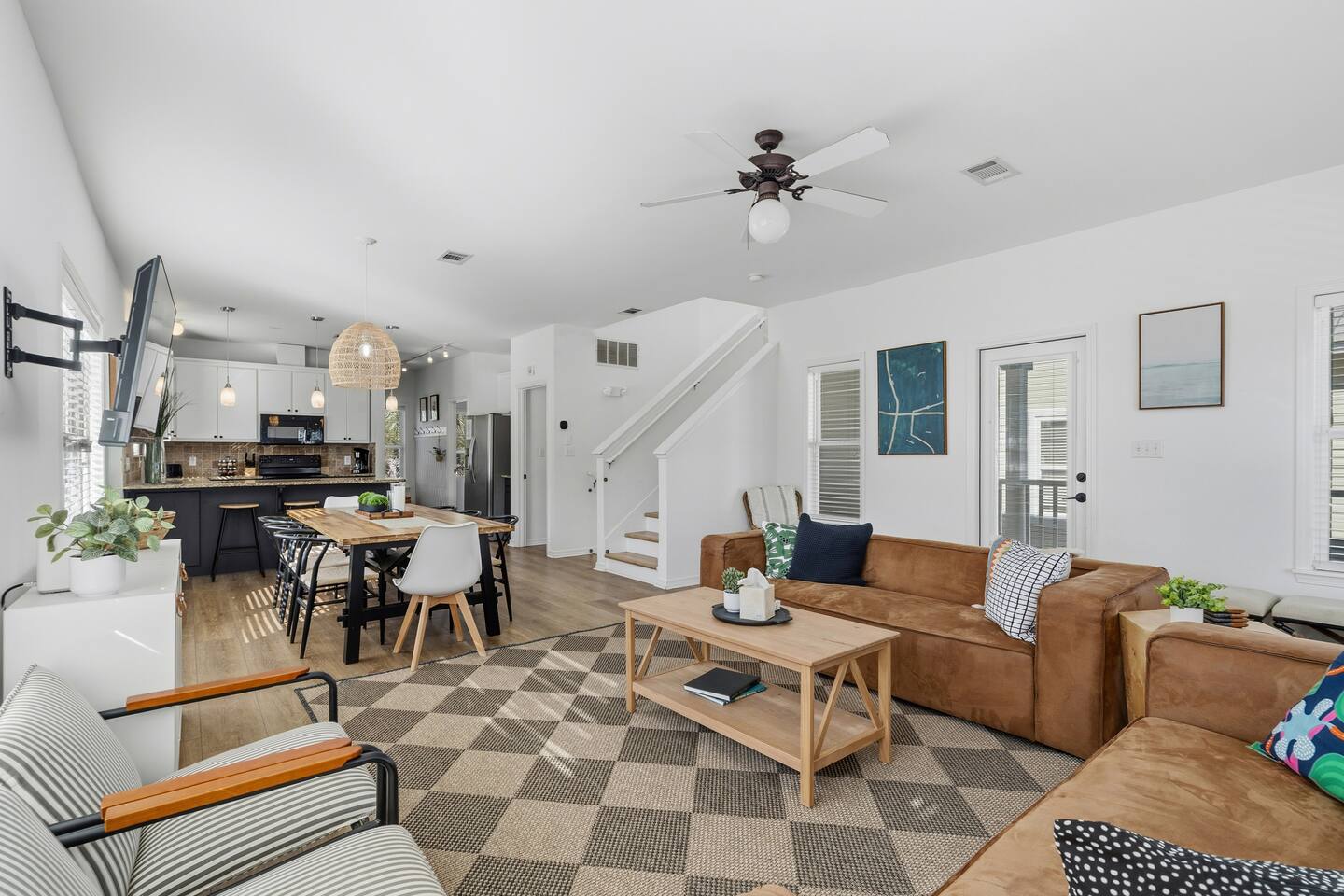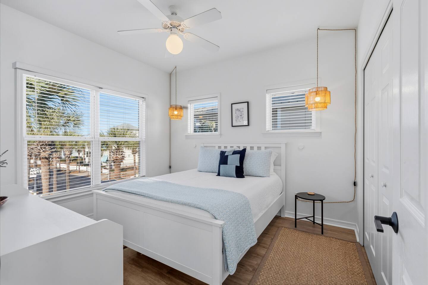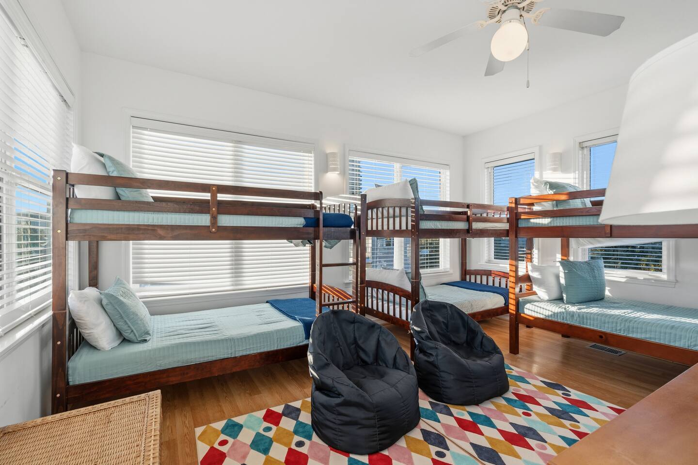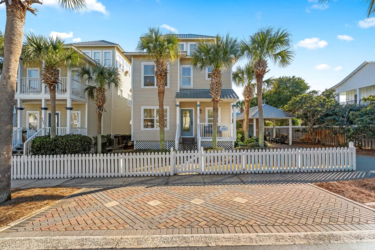 Located in the lovely Gulfside Cottages. Our streets are lined with white-picket-fences. Our home is located at the end of the cul-de-sac (closest to the beach) and ideal for families! Next to our home is the private pathway from the front door to the sugary sand of the Emerald Coast! We make it easy to go back-and-forth to the beach just steps away. In the other direction we are a short walk (less than 2 minutes) to community pool. (The community pool is heated from March 1 to Easter every year.) Conveniently located near a grocery store, Chick-fil-a, Starbucks, Whataburger & the Silver Sands Outlet Mall! There is a Bass Pro Shop in one direction, and a Pottery Barn in the other direction. This is the best shopping around! Lots of fun beach toys now fill our carport, including boogie boards, shovels, buckets, & beach chairs. Cook burgers on the outdoor grill with Adirondack chairs to recline in. Additionally, we have an outdoor shower at the back of the house to wash off the sand & sunscreen after a day at the beach. After a long day at the beach unwind with an iconic movie on DisneyPlus, such as Star Wars, Moana, Home Alone, National Geographic, Toy Story, Cars, Frozen, Mufasa, and many more! The kitchen has granite countertops and stone backsplash. The kitchen is well stocked with pot/pans and everything you need to cook up a great dinner. We have a regular drip coffee maker & a Keurig. Please remember to bring your own coffee. House is 3 levels at 2228 Sq Ft with 4 Bedrooms + Loft. We have ample parking and can easily fit 3-4 cars. No boats, RV’s or trailers please. Guest access We have automated smart locks on all doors and will provide you with a code at check in. The space - Location! Location! Location! - Private Beach Access Walkway - Neighborhood Pool - 2 King Bedrooms - 2 Queen Bedrooms - 3 Full Bathrooms - Loft - Kids area with 3 Bunk Beds (sleeps 6) - Includes 2 baby Pack-n-Plays, plus a baby-gate for the stairs - WIFI & TVs with ROKU & Disney Streaming in every room - Fantastic Shopping Nearby - One of the most popular properties in Miramar Beach! - Parking can accommodate 3-4 vehicles House Layout: • 1st level – 2 king bedrooms, 1 queen bedroom, 2 full bathrooms • 2nd level – 1 queen bedroom, 1 full bathroom, kitchen, living space, laundry, balcony • 3rd level – 3 bunk beds (sleeps 6) • All rooms have a TV with Roku with Disney Check-in: 4:00pm Check-out: 10:00am Self-Check-in with a Smart Lock No Smoking No Pets No Parties or Events Smoke alarms in every room We look forward to hosting you!!