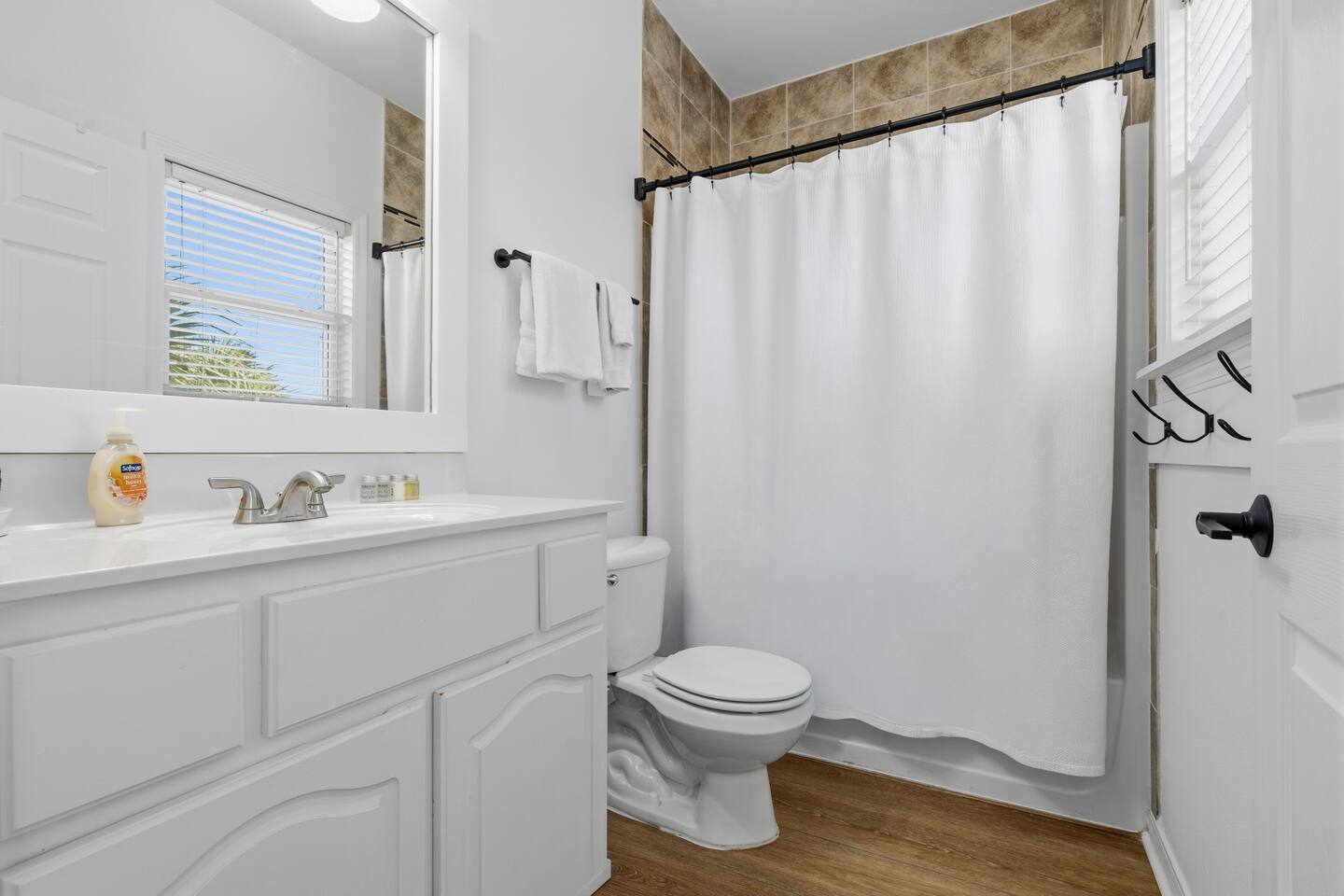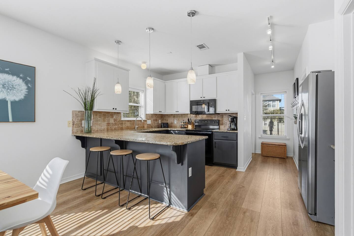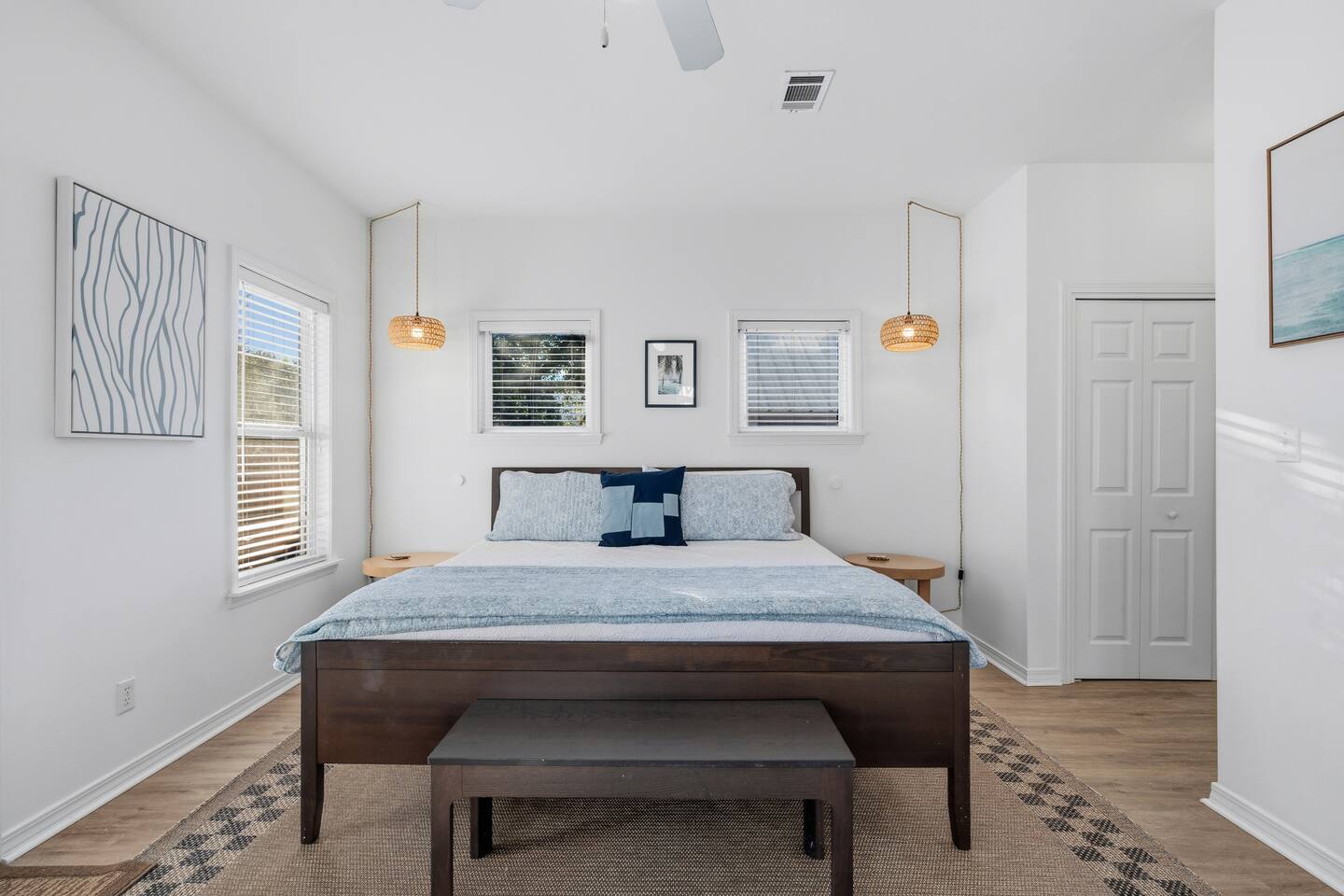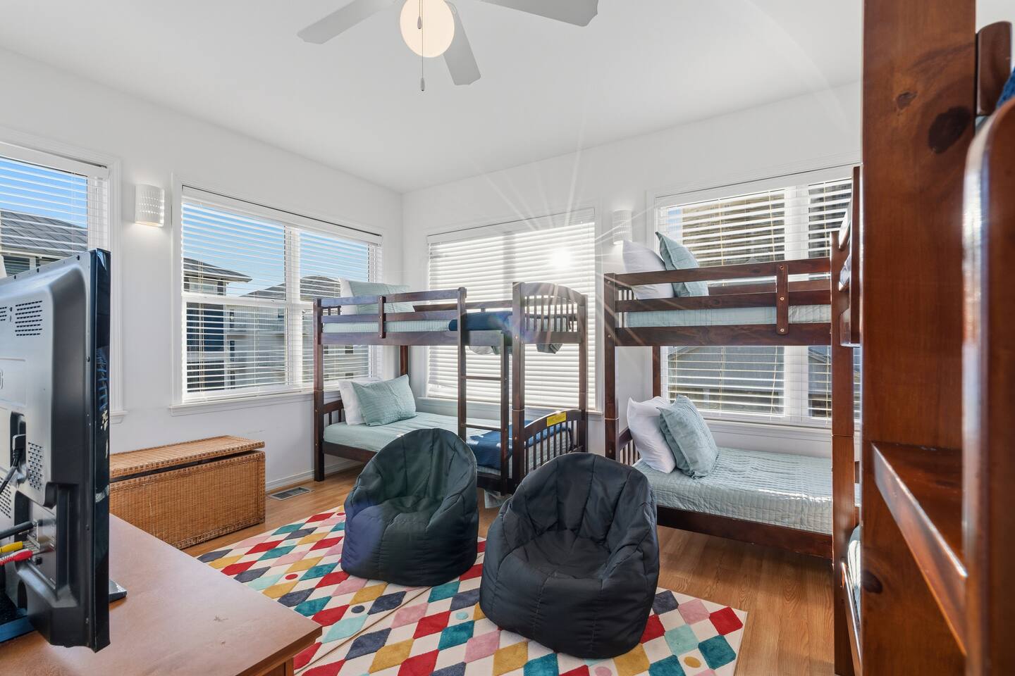 Located in the lovely Gulfside Cottages. Our streets are lined with white-picket-fences. Our home is located at the end of the cul-de-sac (closest to the beach) and ideal for families! Next to our home is the private pathway from the front door to the sugary sand of the Emerald Coast! We make it easy to go back-and-forth to the beach just steps away. In the other direction we are a short walk (less than 2 minutes) to community pool. (The community pool is heated from March 1 to Easter every year.) Conveniently located near a grocery store, Chick-fil-a, Starbucks, Whataburger & the Silver Sands Outlet Mall! There is a Bass Pro Shop in one direction, and a Pottery Barn in the other direction. This is the best shopping around! Lots of fun beach toys now fill our carport, including boogie boards, shovels, buckets, & beach chairs. Cook burgers on the outdoor grill with Adirondack chairs to recline in. Additionally, we have an outdoor shower at the back of the house to wash off the sand & sunscreen after a day at the beach. After a long day at the beach unwind with an iconic movie on DisneyPlus, such as Star Wars, Moana, Home Alone, National Geographic, Toy Story, Cars, Frozen, Mufasa, and many more! The kitchen has granite countertops and stone backsplash. The kitchen is well stocked with pot/pans and everything you need to cook up a great dinner. We have a regular drip coffee maker & a Keurig. Please remember to bring your own coffee. House is 3 levels at 2228 Sq Ft with 4 Bedrooms + Loft. We have ample parking and can easily fit 3-4 cars. No boats, RV’s or trailers please. Guest access We have automated smart locks on all doors and will provide you with a code at check in. The space - Location! Location! Location! - Private Beach Access Walkway - Neighborhood Pool - 2 King Bedrooms - 2 Queen Bedrooms - 3 Full Bathrooms - Loft - Kids area with 3 Bunk Beds (sleeps 6) - Includes 2 baby Pack-n-Plays, plus a baby-gate for the stairs - WIFI & TVs with ROKU & Disney Streaming in every room - Fantastic Shopping Nearby - One of the most popular properties in Miramar Beach! - Parking can accommodate 3-4 vehicles House Layout: • 1st level – 2 king bedrooms, 1 queen bedroom, 2 full bathrooms • 2nd level – 1 queen bedroom, 1 full bathroom, kitchen, living space, laundry, balcony • 3rd level – 3 bunk beds (sleeps 6) • All rooms have a TV with Roku with Disney Check-in: 4:00pm Check-out: 10:00am Self-Check-in with a Smart Lock No Smoking No Pets No Parties or Events Smoke alarms in every room We look forward to hosting you!!