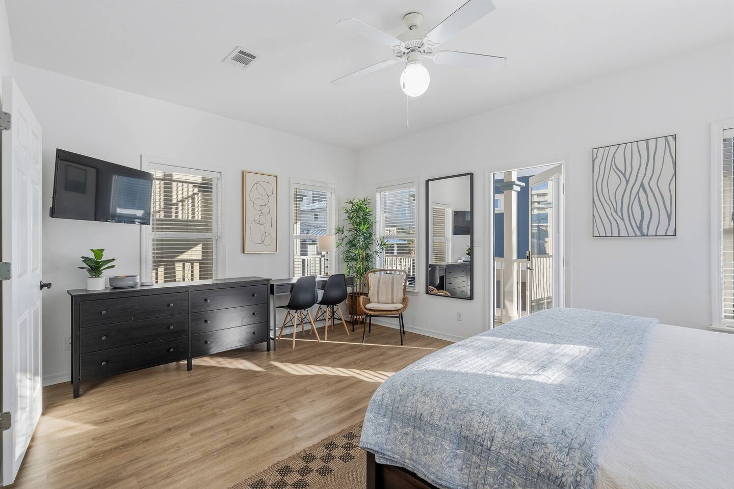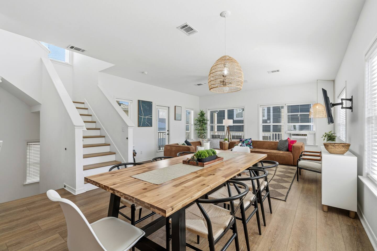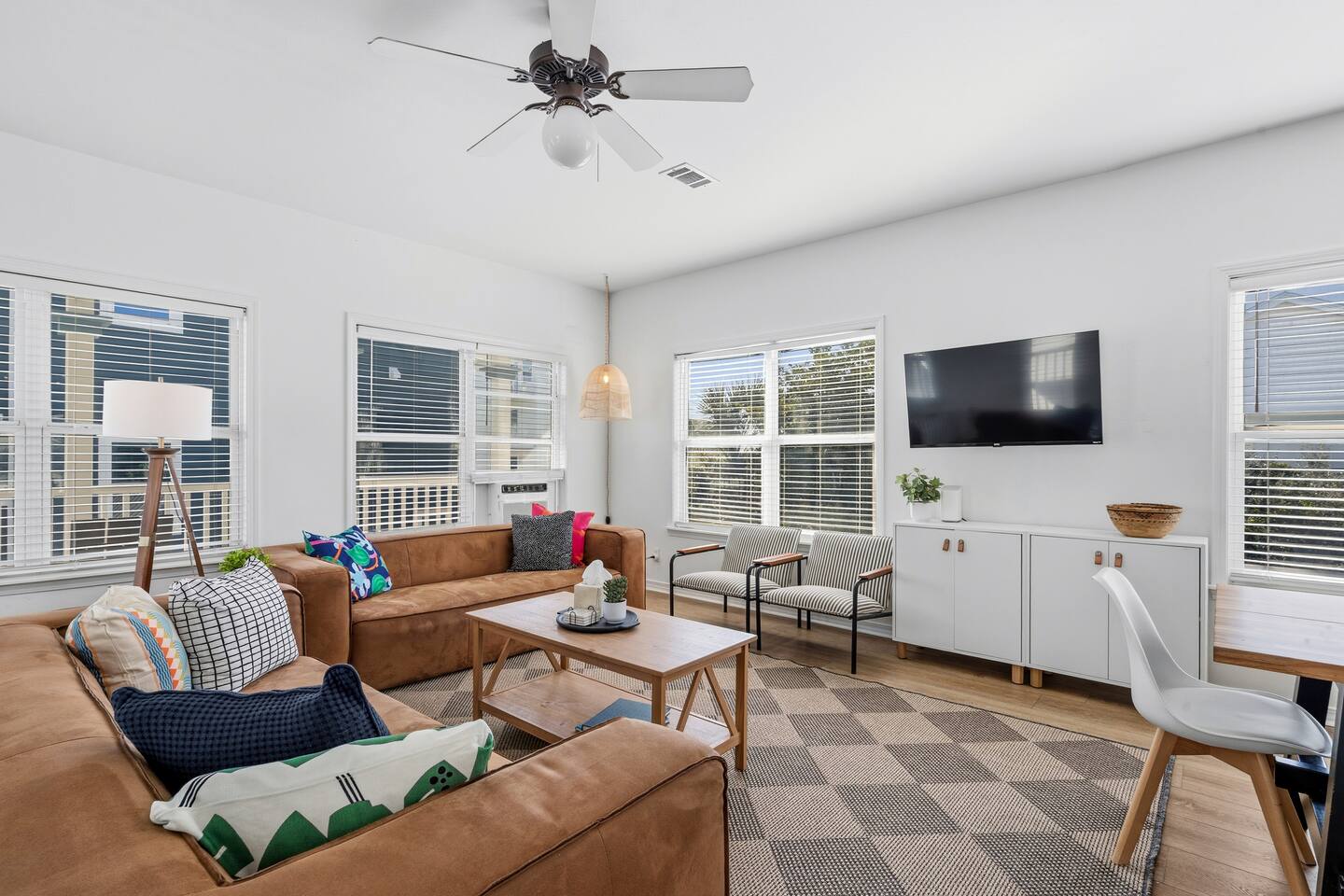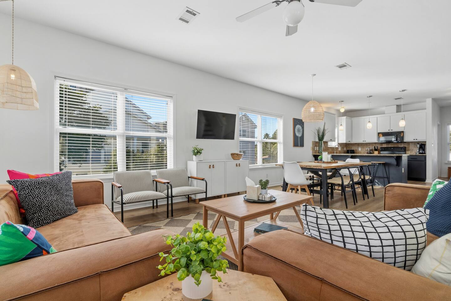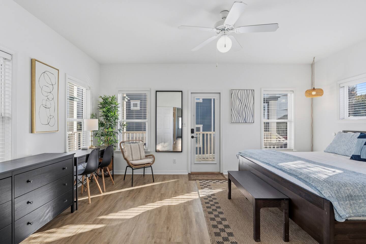 Located in the lovely Gulfside Cottages. Our streets are lined with white-picket-fences. Our home is located at the end of the cul-de-sac (closest to the beach) and ideal for families! Next to our home is the private pathway from the front door to the sugary sand of the Emerald Coast! We make it easy to go back-and-forth to the beach just steps away. In the other direction we are a short walk (less than 2 minutes) to community pool. (The community pool is heated from March 1 to Easter every year.) Conveniently located near a grocery store, Chick-fil-a, Starbucks, Whataburger & the Silver Sands Outlet Mall! There is a Bass Pro Shop in one direction, and a Pottery Barn in the other direction. This is the best shopping around! Lots of fun beach toys now fill our carport, including boogie boards, shovels, buckets, & beach chairs. Cook burgers on the outdoor grill with Adirondack chairs to recline in. Additionally, we have an outdoor shower at the back of the house to wash off the sand & sunscreen after a day at the beach. After a long day at the beach unwind with an iconic movie on DisneyPlus, such as Star Wars, Moana, Home Alone, National Geographic, Toy Story, Cars, Frozen, Mufasa, and many more! The kitchen has granite countertops and stone backsplash. The kitchen is well stocked with pot/pans and everything you need to cook up a great dinner. We have a regular drip coffee maker & a Keurig. Please remember to bring your own coffee. House is 3 levels at 2228 Sq Ft with 4 Bedrooms + Loft. We have ample parking and can easily fit 3-4 cars. No boats, RV’s or trailers please. Guest access We have automated smart locks on all doors and will provide you with a code at check in. The space - Location! Location! Location! - Private Beach Access Walkway - Neighborhood Pool - 2 King Bedrooms - 2 Queen Bedrooms - 3 Full Bathrooms - Loft - Kids area with 3 Bunk Beds (sleeps 6) - Includes 2 baby Pack-n-Plays, plus a baby-gate for the stairs - WIFI & TVs with ROKU & Disney Streaming in every room - Fantastic Shopping Nearby - One of the most popular properties in Miramar Beach! - Parking can accommodate 3-4 vehicles House Layout: • 1st level – 2 king bedrooms, 1 queen bedroom, 2 full bathrooms • 2nd level – 1 queen bedroom, 1 full bathroom, kitchen, living space, laundry, balcony • 3rd level – 3 bunk beds (sleeps 6) • All rooms have a TV with Roku with Disney Check-in: 4:00pm Check-out: 10:00am Self-Check-in with a Smart Lock No Smoking No Pets No Parties or Events Smoke alarms in every room We look forward to hosting you!!