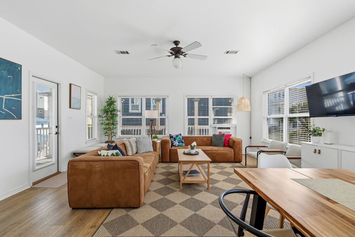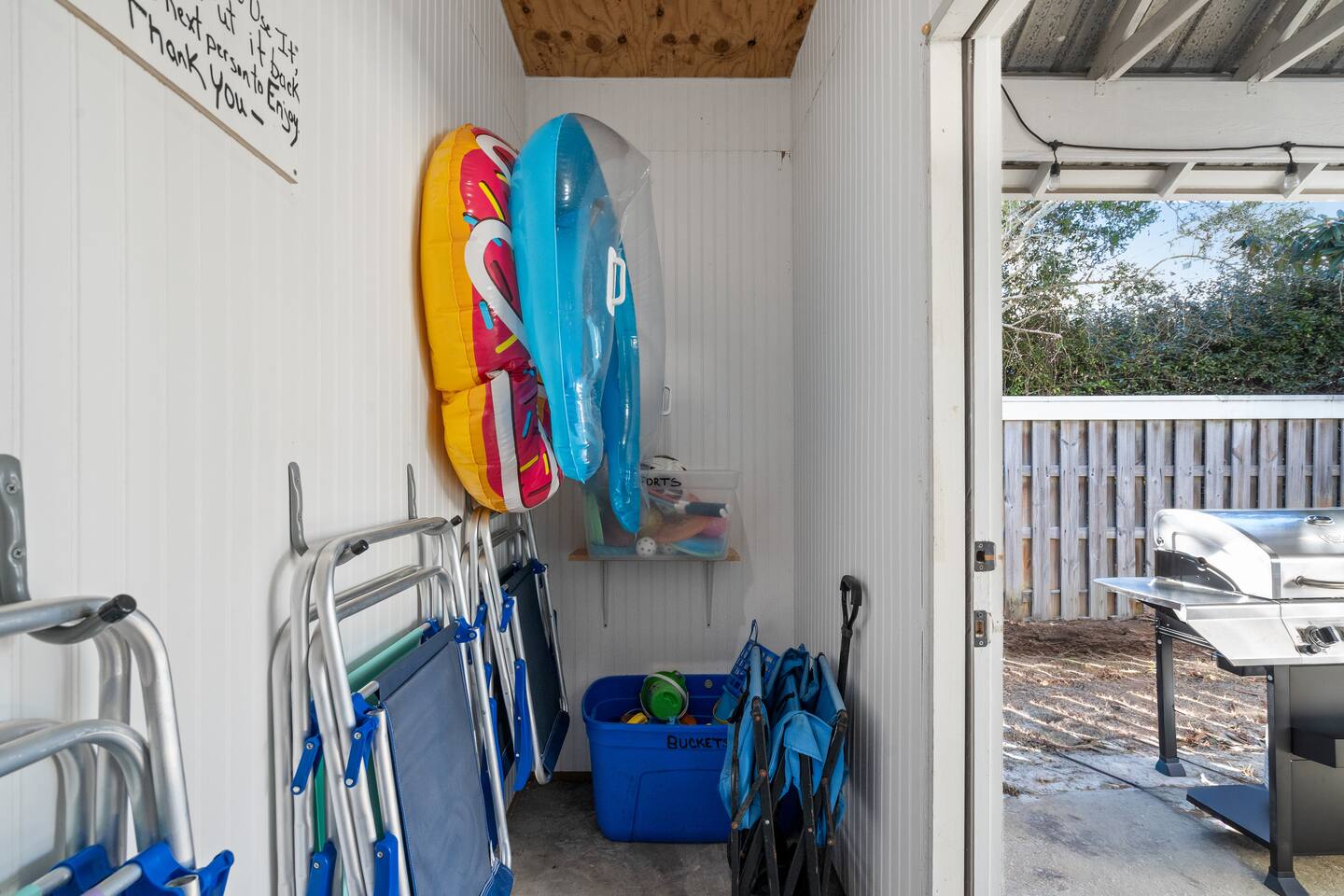 Sandy Feet is located at the end of a quiet cul-de-sac which makes it perfect for kids to get out and play. The beach access walkway is to the right side of the house. Easy access to get to the beach and less than 150 steps. Wrap up your day at the beach or pool by rinsing off at the outdoor shower near the back of the house. Sandy Feet includes a covered carport, a gas propane grill, and a little bit of grassy area as part of the backyard.